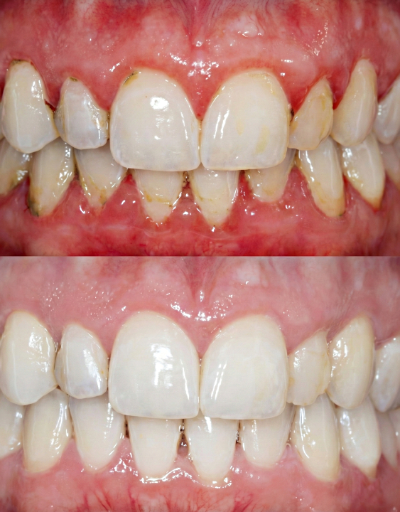 Alignement dentaire de précision par appareillage orthodontique fixe.